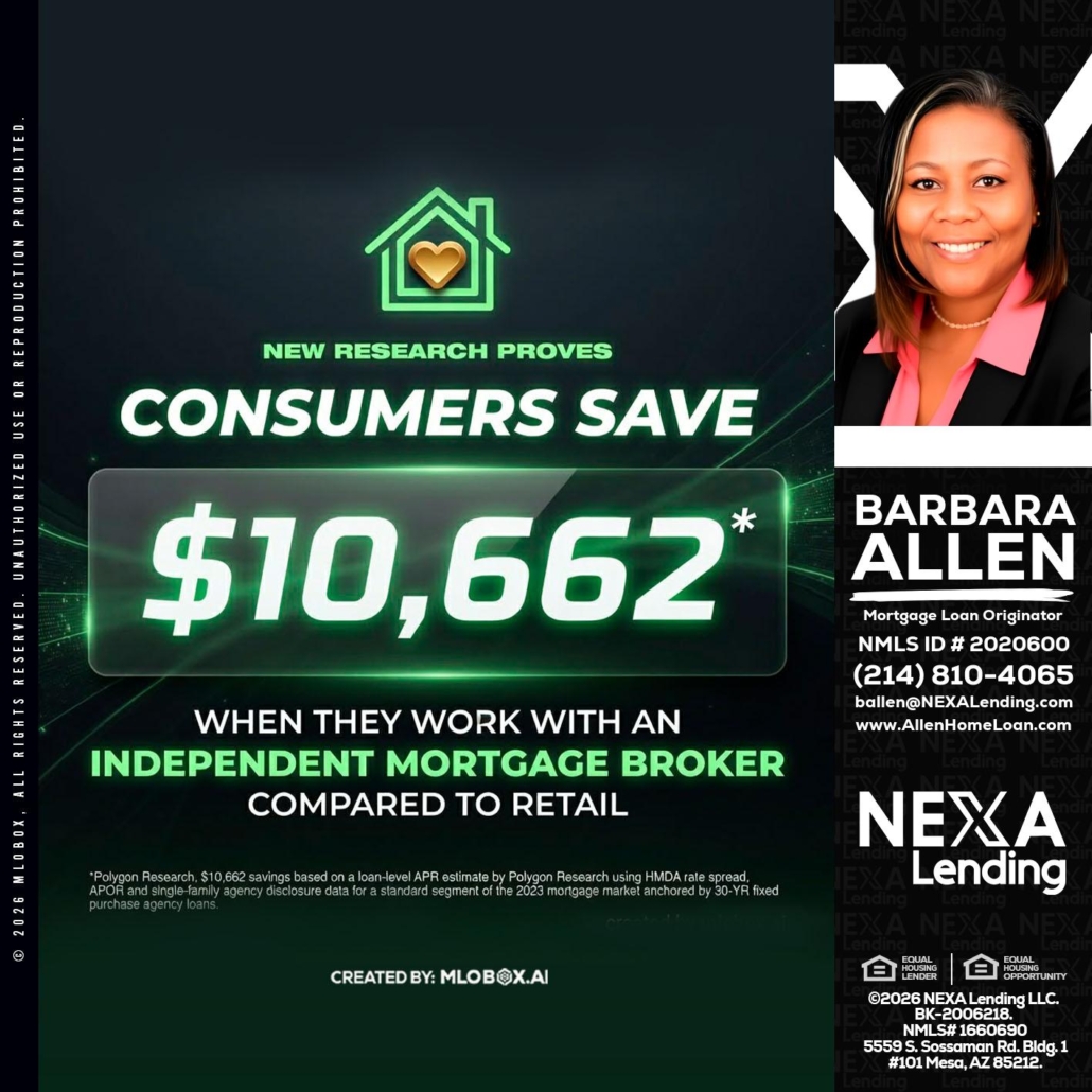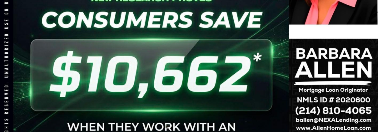 Hi, my name is Barbara Allen. I’m a Loan Officer with NEXA Lending LLC., offering personalized mortgage solutions, fast customized quotes, great rates and service with integrity.