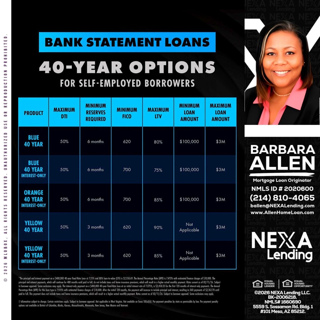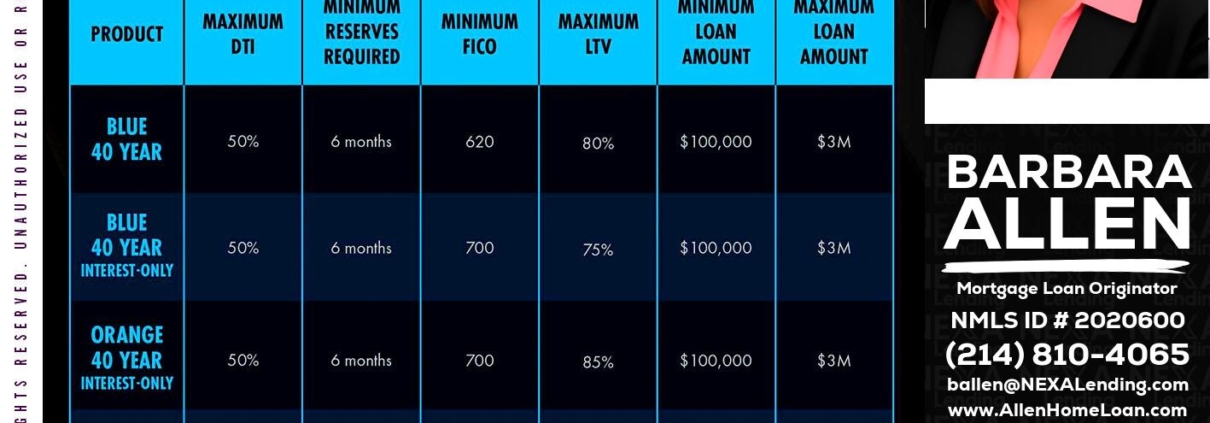 Hi, my name is Barbara Allen. I’m a Loan Officer with NEXA Lending LLC., offering personalized mortgage solutions, fast customized quotes, great rates and service with integrity.