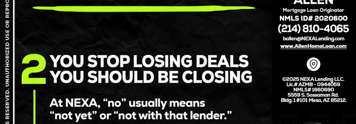 Hi, my name is Barbara Allen. I’m a Loan Officer with NEXA Lending LLC., offering personalized mortgage solutions, fast customized quotes, great rates and service with integrity.