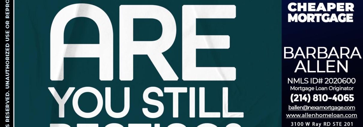 Hi, my name is Barbara Allen. I’m a Loan Officer with Allen Home Loan empowered by NEXA Mortgage LLC., offering personalized mortgage solutions, fast customized quotes, great rates and service with integrity.