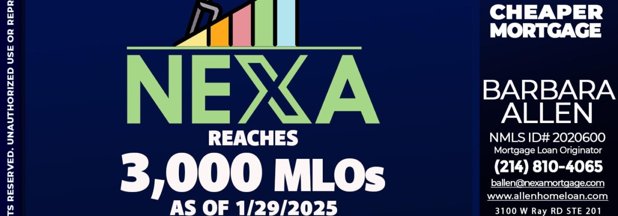 Hi, my name is Barbara Allen. I’m a Loan Officer with Allen Home Loan empowered by NEXA Mortgage LLC., offering personalized mortgage solutions, fast customized quotes, great rates and service with integrity.