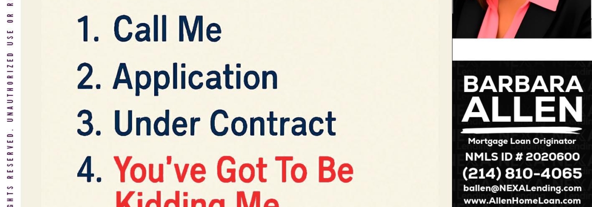 Hi, my name is Barbara Allen. I’m a Loan Officer with NEXA Lending LLC., offering personalized mortgage solutions, fast customized quotes, great rates and service with integrity.