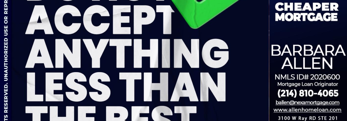Hi, my name is Barbara Allen. I’m a Loan Officer with Allen Home Loan empowered by NEXA Mortgage LLC., offering personalized mortgage solutions, fast customized quotes, great rates and service with integrity.