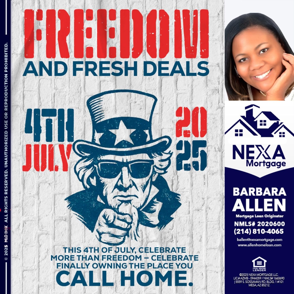 Hi, my name is Barbara Allen. I’m a Loan Officer with Allen Home Loan empowered by NEXA Mortgage LLC., offering personalized mortgage solutions, fast customized quotes, great rates and service with integrity.