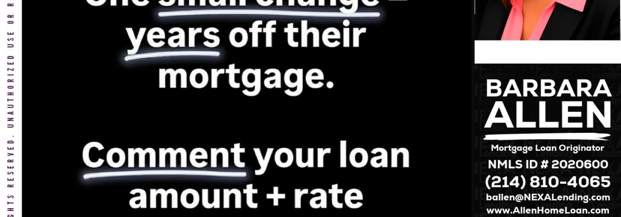 Hi, my name is Barbara Allen. I’m a Loan Officer with NEXA Lending LLC., offering personalized mortgage solutions, fast customized quotes, great rates and service with integrity.