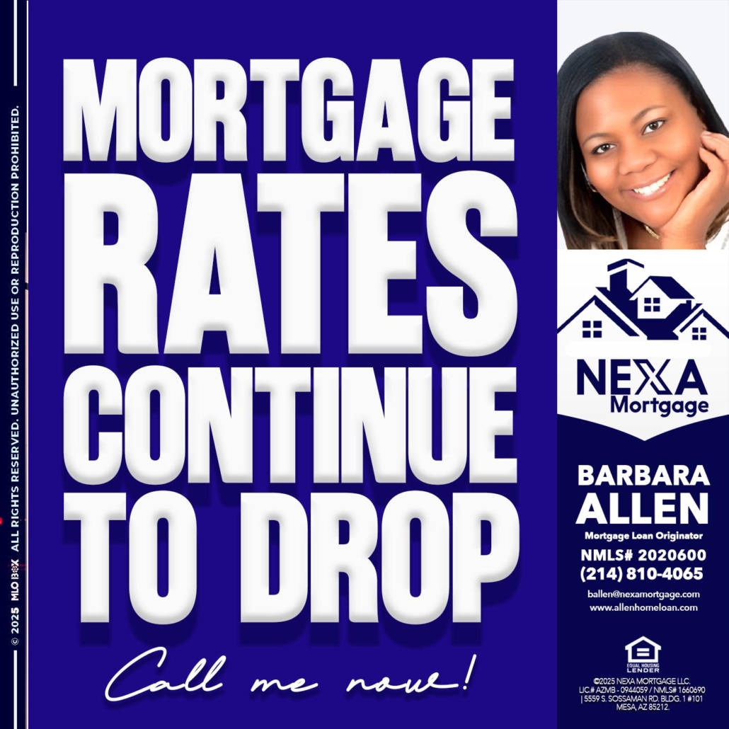 Hi, my name is Barbara Allen. I’m a Loan Officer with Allen Home Loan empowered by NEXA Mortgage LLC., offering personalized mortgage solutions, fast customized quotes, great rates and service with integrity.