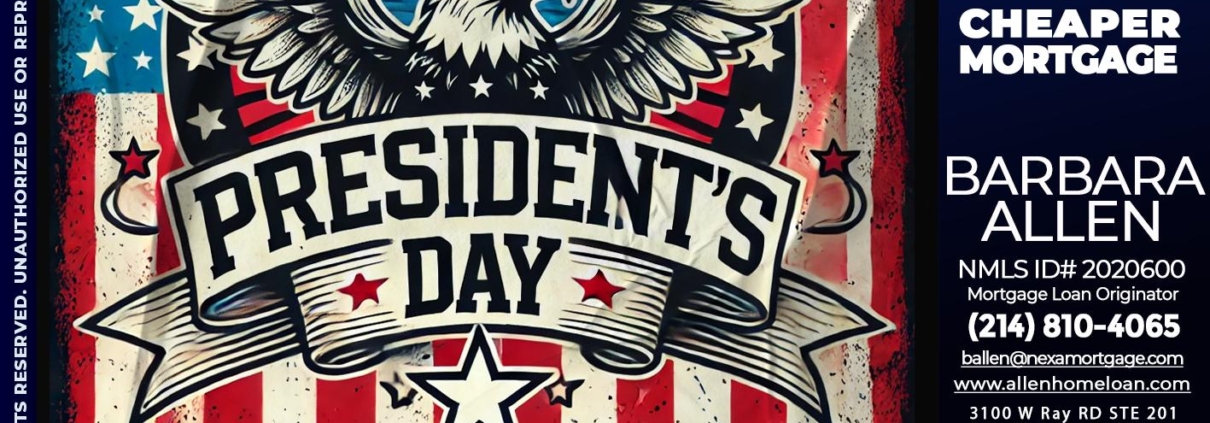 PRESIDENTS DAY - Barbara Allen -Mortgage ConsultantHi, my name is Barbara Allen. I’m a Loan Officer with Allen Home Loan empowered by NEXA Mortgage LLC., offering personalized mortgage solutions, fast customized quotes, great rates and service with integrity.