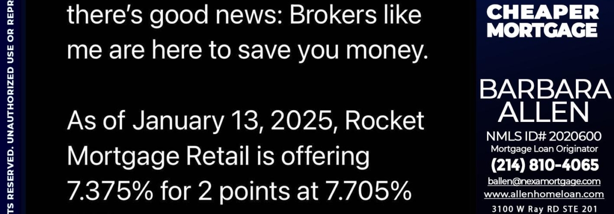 Hi, my name is Barbara Allen. I’m a Loan Officer with Allen Home Loan empowered by NEXA Mortgage LLC., offering personalized mortgage solutions, fast customized quotes, great rates and service with integrity.