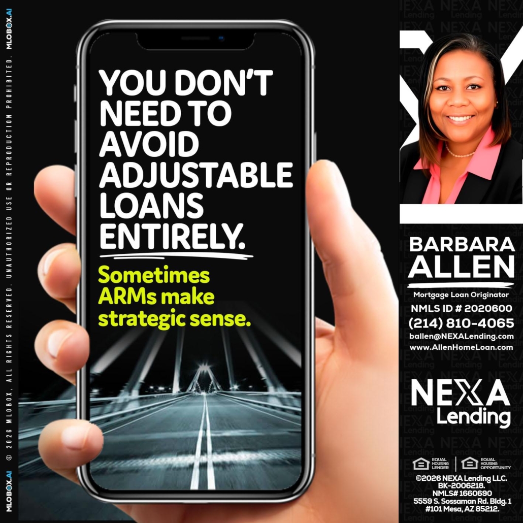 Hi, my name is Barbara Allen. I’m a Loan Officer with NEXA Lending LLC., offering personalized mortgage solutions, fast customized quotes, great rates and service with integrity.