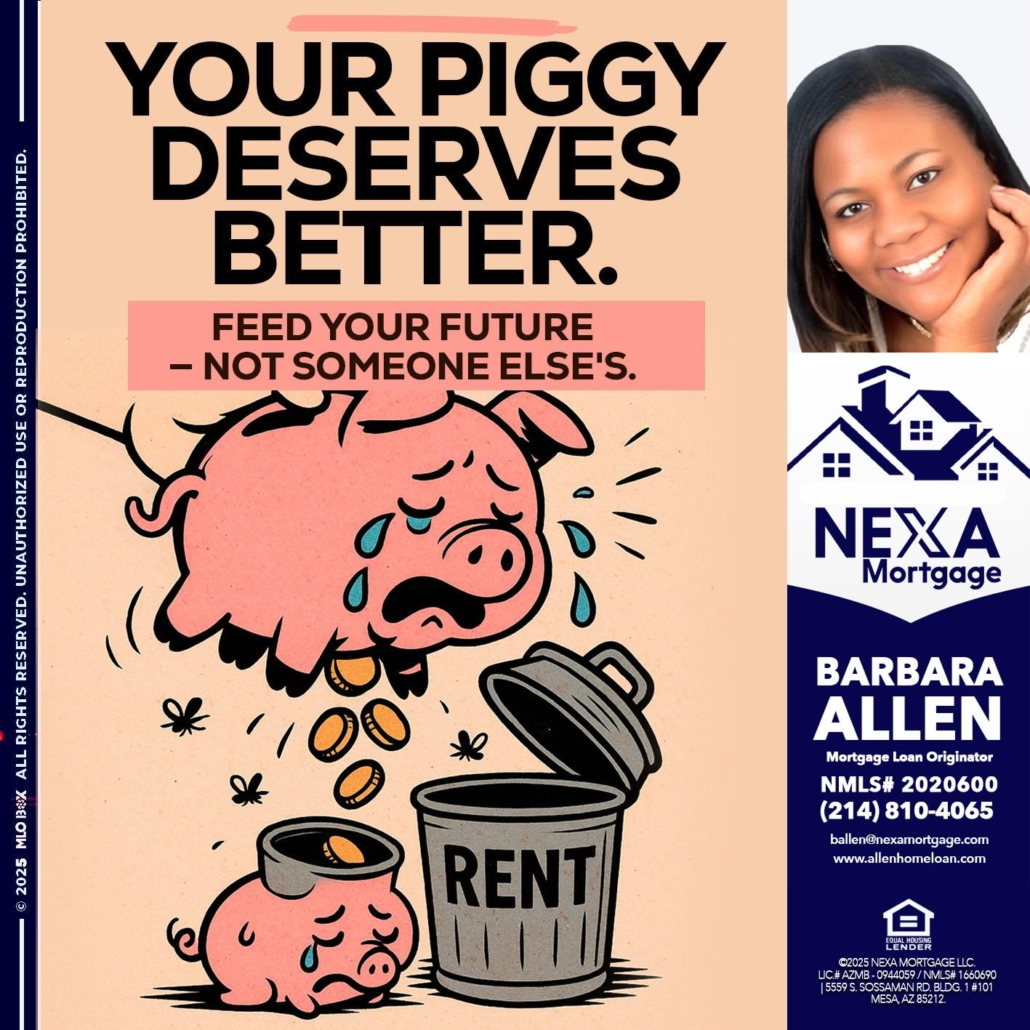 Hi, my name is Barbara Allen. I’m a Loan Officer with Allen Home Loan empowered by NEXA Mortgage LLC., offering personalized mortgage solutions, fast customized quotes, great rates and service with integrity.